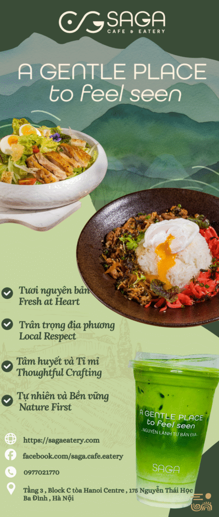 Saga Cafe & Eatery rất thích hợp cho các đối tác, văn phòng, công sở, gia đình, hay nhóm bạn trẻ đến đây chụp ảnh, thưởng thức, làm việc hay chỉ đơn giản là cần một không gian thư giãn.