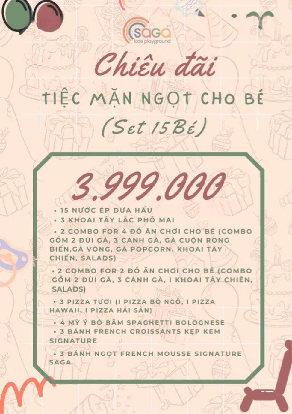 Đặc biệt, Khu Private Space cũng có thể được sử dụng cho các buổi tiệc sinh nhật hoặc các sự kiện đặc biệt khác. Hiện nay, SAGA cung cấp các gói dịch vụ tổ chức tiệc trọn gói phục vụ nhu cầu của gia đình mình:
